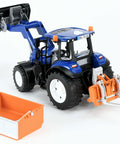 The new New Holland T5 was designed as a versatile all-rounder for modern farms. Numerous equipment options, high driving comfort, and efficient fuel consumption make it a reliable partner for use in all conditions. This compact yet highly powerful tractor, with its renowned attention to detail, is a new addition to the extensive Bruder tractor fleet. Naturally, this tractor also features the typical Bruder features, such as the all-terrain swing front axle and the additional steering rod. This tractor can also be combined with virtually all agricultural front and attached implements from the Bruder range.