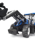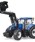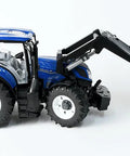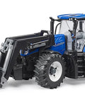 In modern agricultural operations, powerful tractors are necessary. That is why the T7 Heavy Duty series from New Holland was designed with a focus on versatility and strength. The New Holland can deliver up to 340 hp for the use of the heaviest work equipment. This makes the tractor strong enough for pulling work, tilling the soil, baling and transport. In terms of design, functionality and quality, the 1:16 scale model from Bruder is in no way inferior to the original, true to the motto - just like the real thing. The driver's cab is fully glazed and the doors are easy to open. The hinged hood provides a view of the impressive engine. Excellent controllability and driving comfort are achieved through the built-in pendulum axle and the steering extension that can be inserted through the sunroof. A fully functional front loader is mounted on this model for even more play value. The height-adjustable rear coupling means that all trailers from the professional series can be used. The removable wheels are attached for even more fun. The addition of the workshop figure set (item no. 62100) further increases the play value of this great item. Of course, all agricultural trailers and agricultural implements from Bruder fit this tractor.