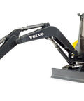 The Volvo mini excavator is easy to use and compact with a short swing radius. Despite its compact body dimensions, it is suitable for a wide range of applications. The additional sideways swivelling excavator arm makes it even more flexible in use. Thanks to its tracked chassis, it can also cope with challenging terrain, even in the sandpit. The chassis blade gives the vehicle more stability on loose ground, making it more suitable for simple levelling activities.